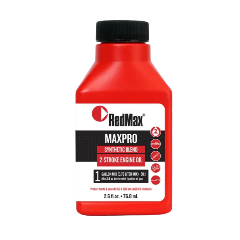 MAXPRO 2-Stroke oil is engineered for top-tier performance, specifically designed and tested for RedMax 2-stroke engines. Certified JASO-FD, MAXPRO meets and exceeds the toughest oil standards, ensuring optimal engine lubricity, excellent detergency, and minimal exhaust output. The low operating temperature keeps engines cooler, promoting easier starts and extended engine life. Its superior detergency reduces deposits, keeping engine components cleaner and minimizing the risk of ring sticking. MAXPRO also includes a fuel stabilizer to prevent fuel breakdown, even with ethanol-blended fuels.